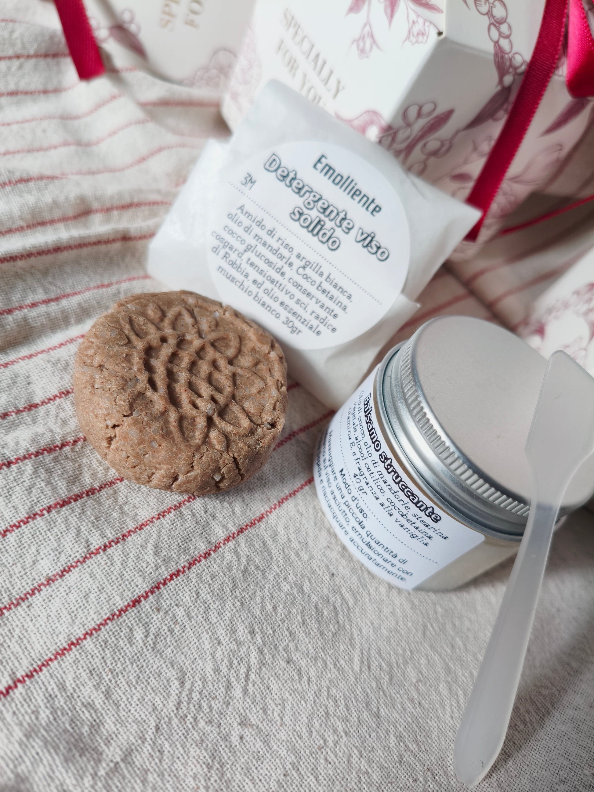 Scopri l'armonia perfetta per la tua pelle con il nostro Box 2 prodotti! Include un detergente solido viso con polvere di Robbia, ideale per una pulizia profonda e delicata, e un balsamo struccante emulsionante alla magnolia, che lascia la tua pelle morbida e luminosa. Regalati un rituale di bellezza che nutre e coccola!