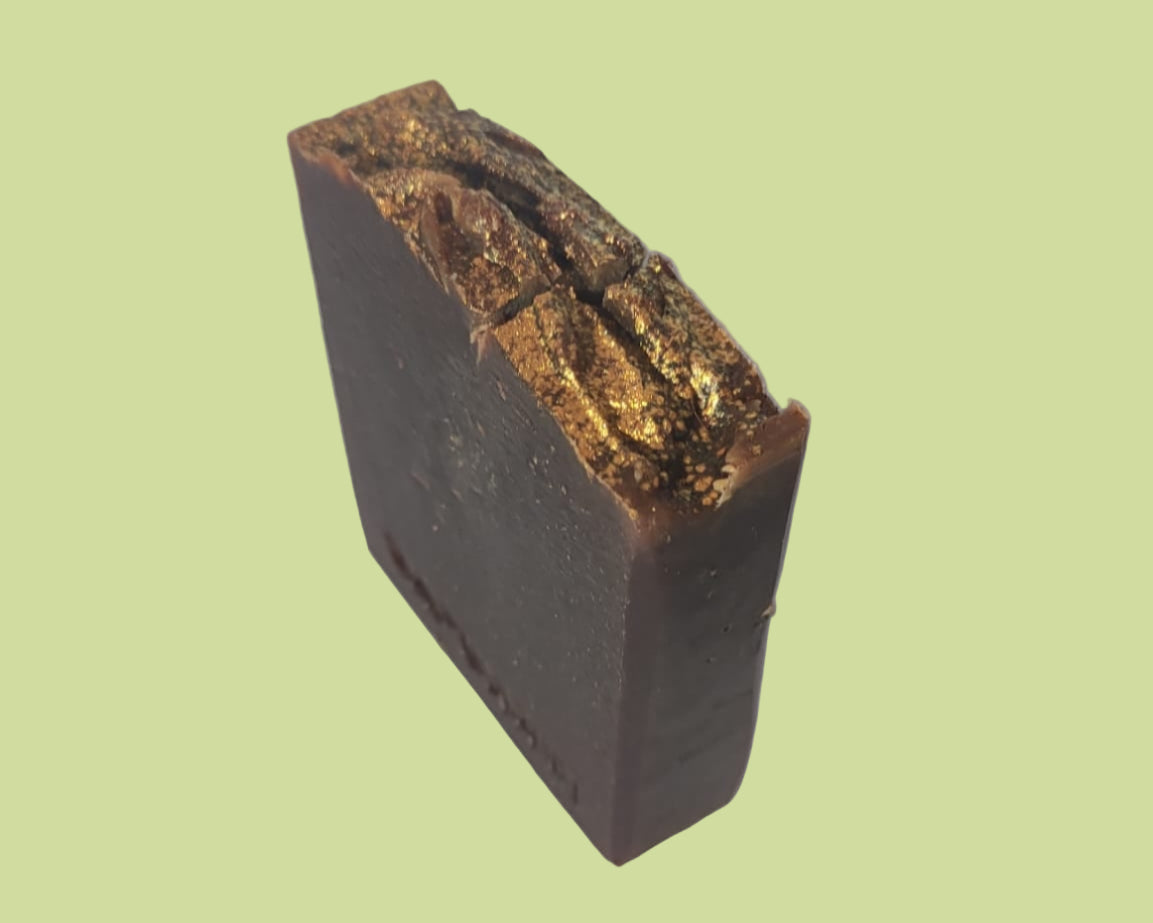 Ingredienti: olio d'oliva, cocco, burro di karité, olio di ricino, acqua distillata, idrossido di sodio, cioccolato in polvere, fragranza cosmetica al cioccolato, ed mica dorata.90gr