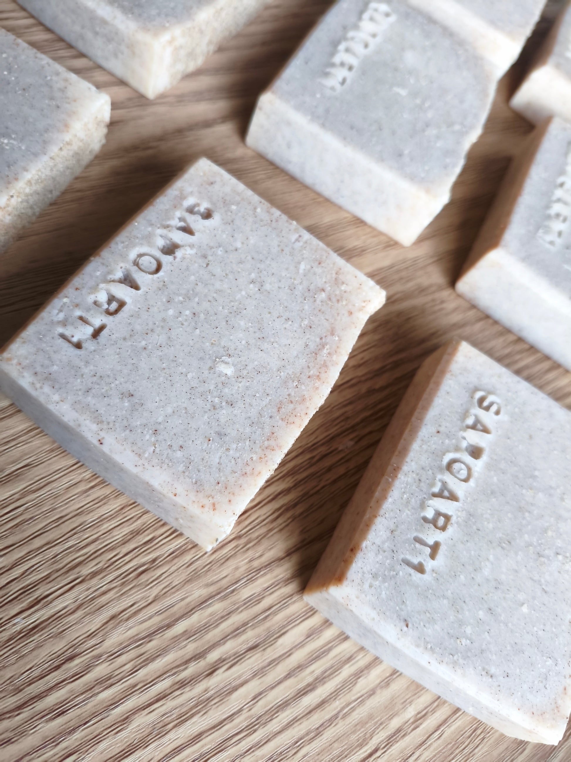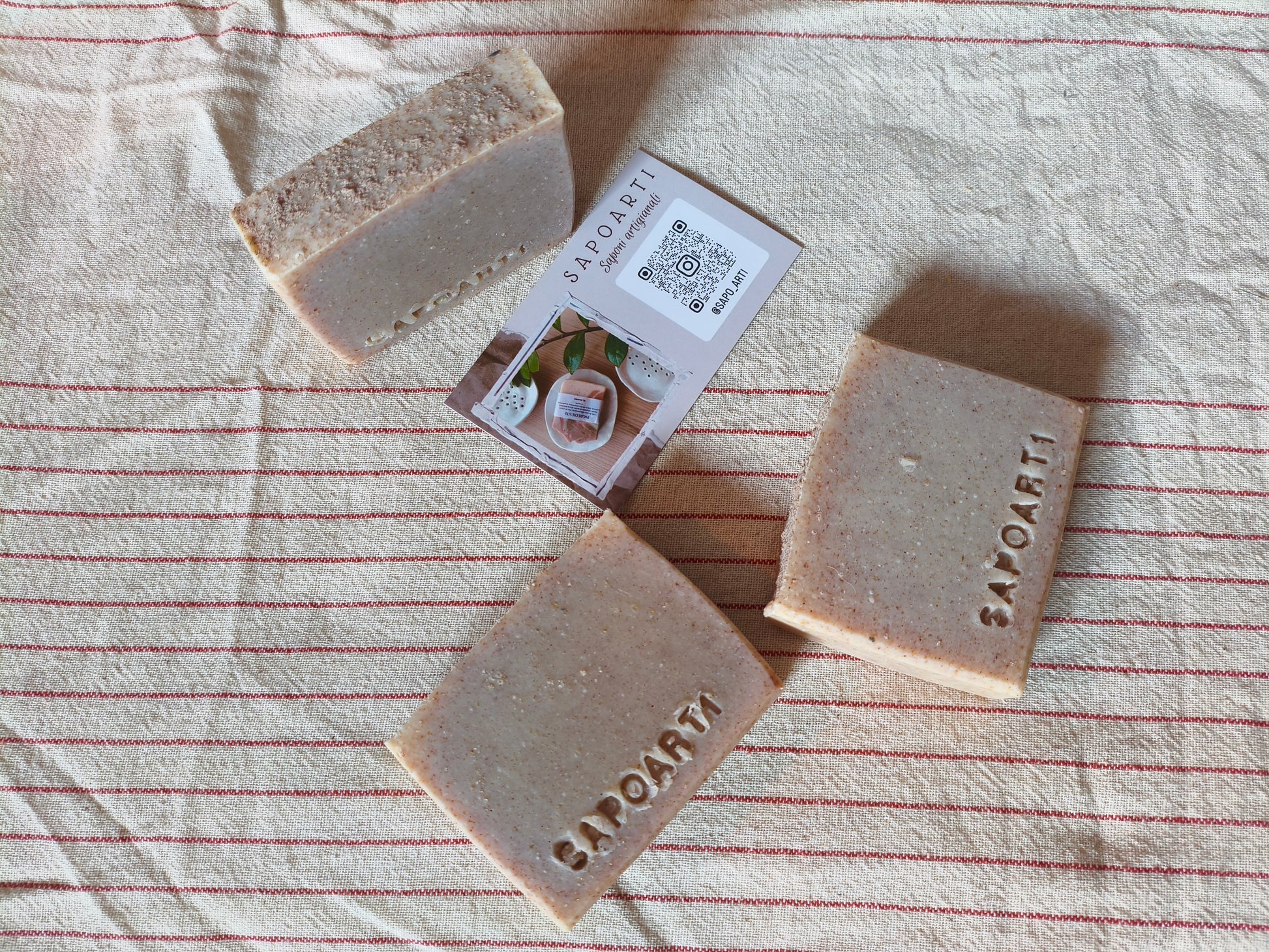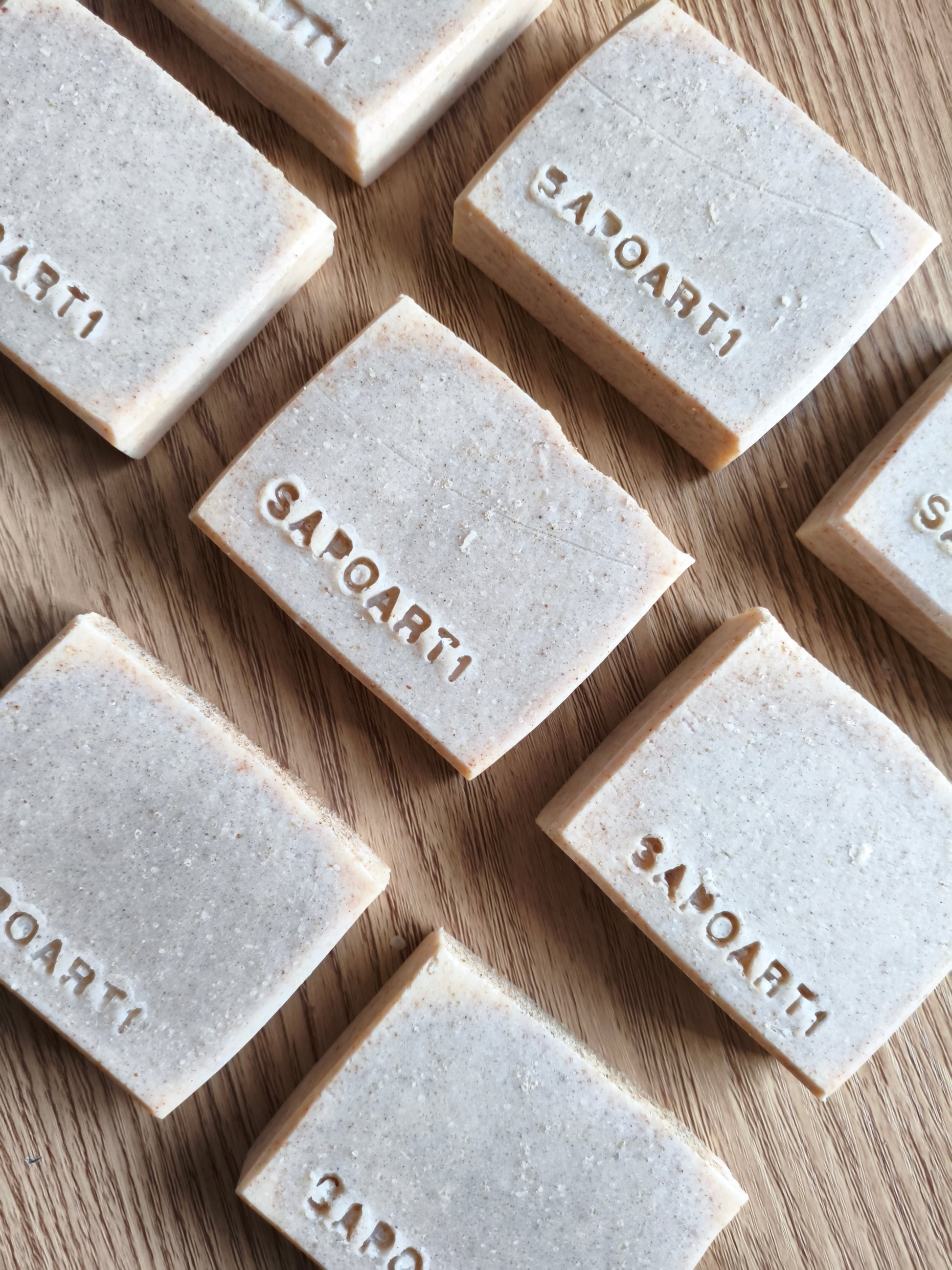 Ingredienti: olio d'oliva, cocco, karité, ricino, farina di riso rosso, acqua distillata ed idrossido di sodio. 100gr